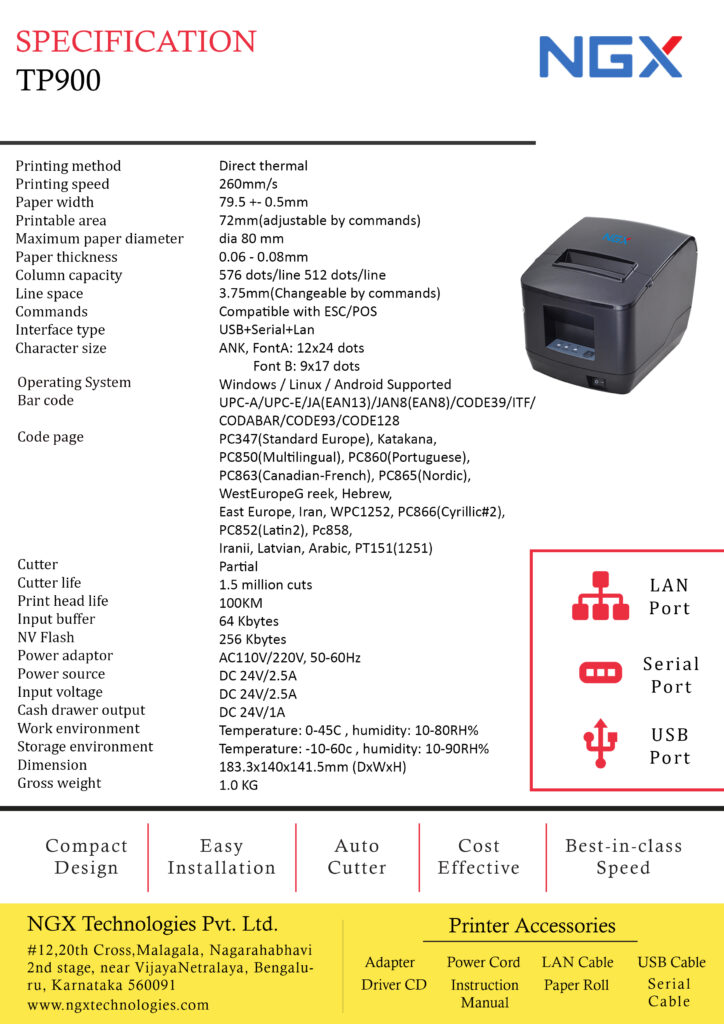 • Interface: USB, LAN, Serial, Cash Drawer